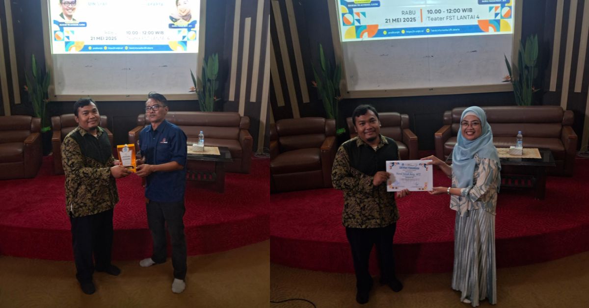 The Informatics Engineering Study Program of FST UIN Syarif Hidayatullah Jakarta successfully held a Studium General on May 21, 2025, with the theme "AI-Based Technopreneurship." The event aimed to equip students with insights into the opportunities and challenges of building tech-driven businesses powered by artificial intelligence.