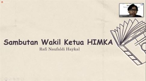 Sambutan selanjutnya adalah sambutan dari wakil presiden Himpunan Mahasiswa Kimia, yaitu Rafi Naufaldi Haykal dan sambutan dari Bapak Dr. La Ode Sumarlin, M.Si selaku Ketua Prodi Kimia UIN Syarif Hidayatullah Jakarta.